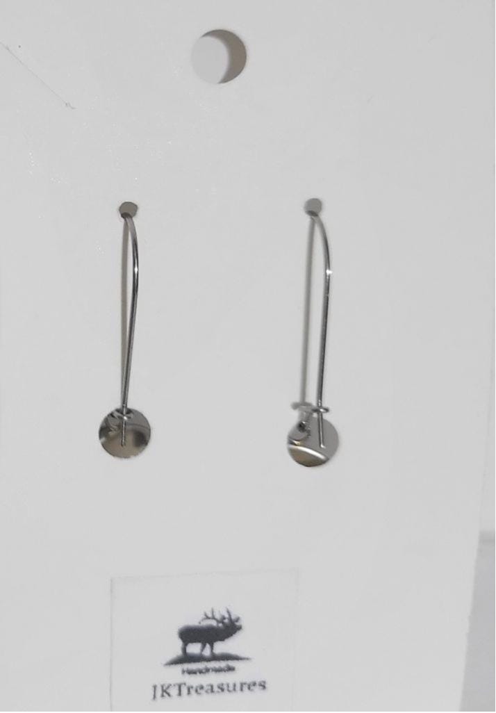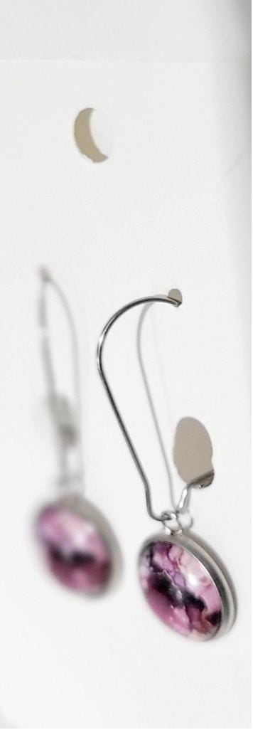 Handmade purple watercolor cabochon and latch back earrings on a stainless steel bezel. Measures approximately .75".