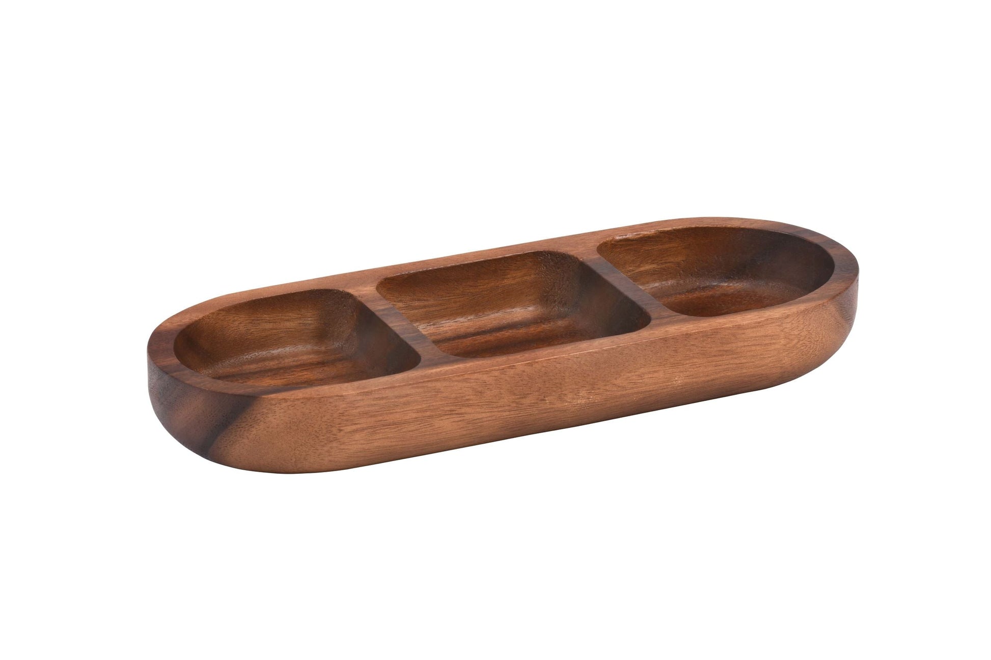 - Kalmar Home's solid Acacia Wood 3 compartment Candy/ Nut Tray creates a stunning and natural presentation for favorite candies and nuts.