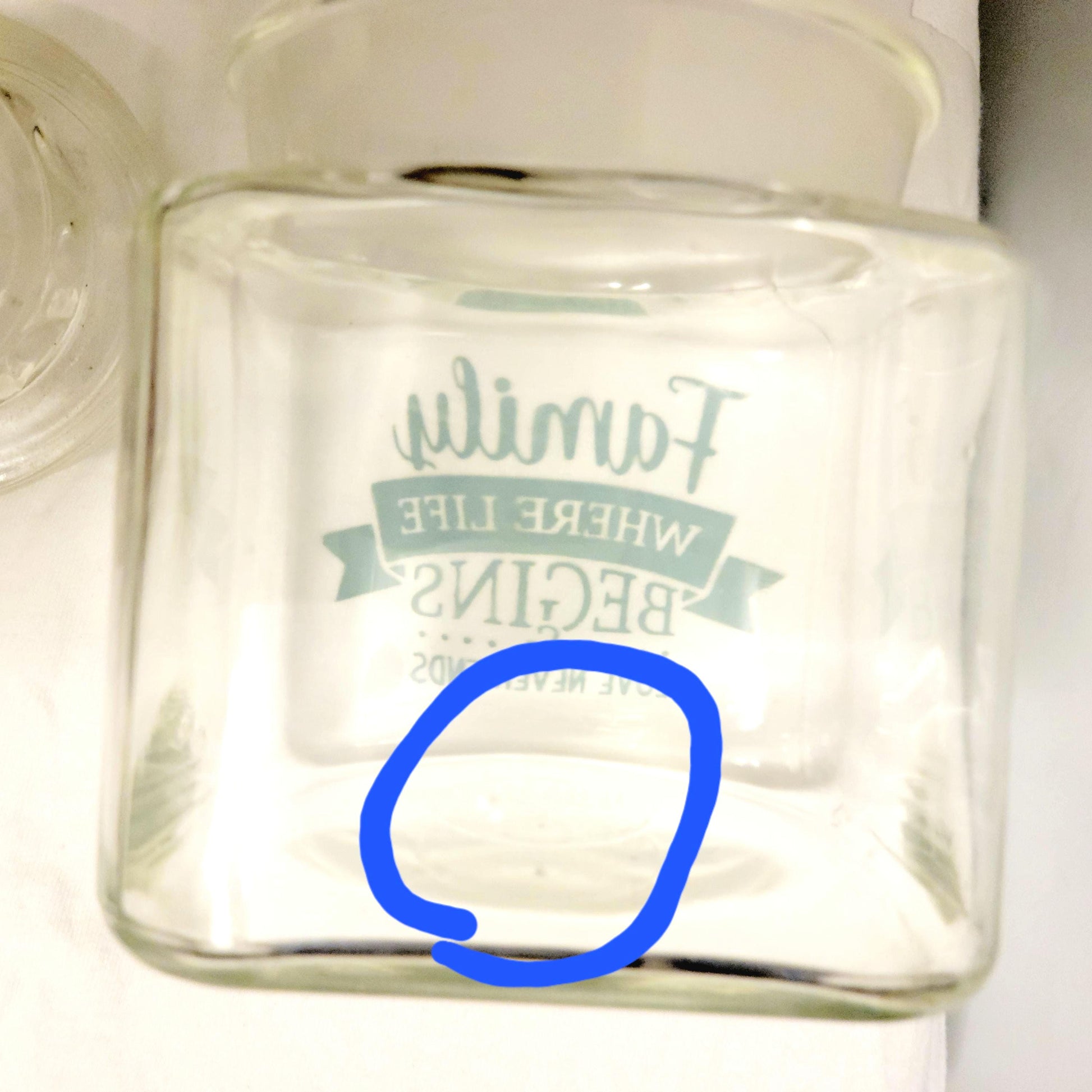 This heartwarming lidded glass jar features the quote 'Family Where Life Begins & Love Never Ends'. Perfect for adding a touch of love and warmth to your home decor. Hand crafted with care to bring a special touch to any room. There is some frosted areas on the lid, and dimples in all 4 sides, as shown.