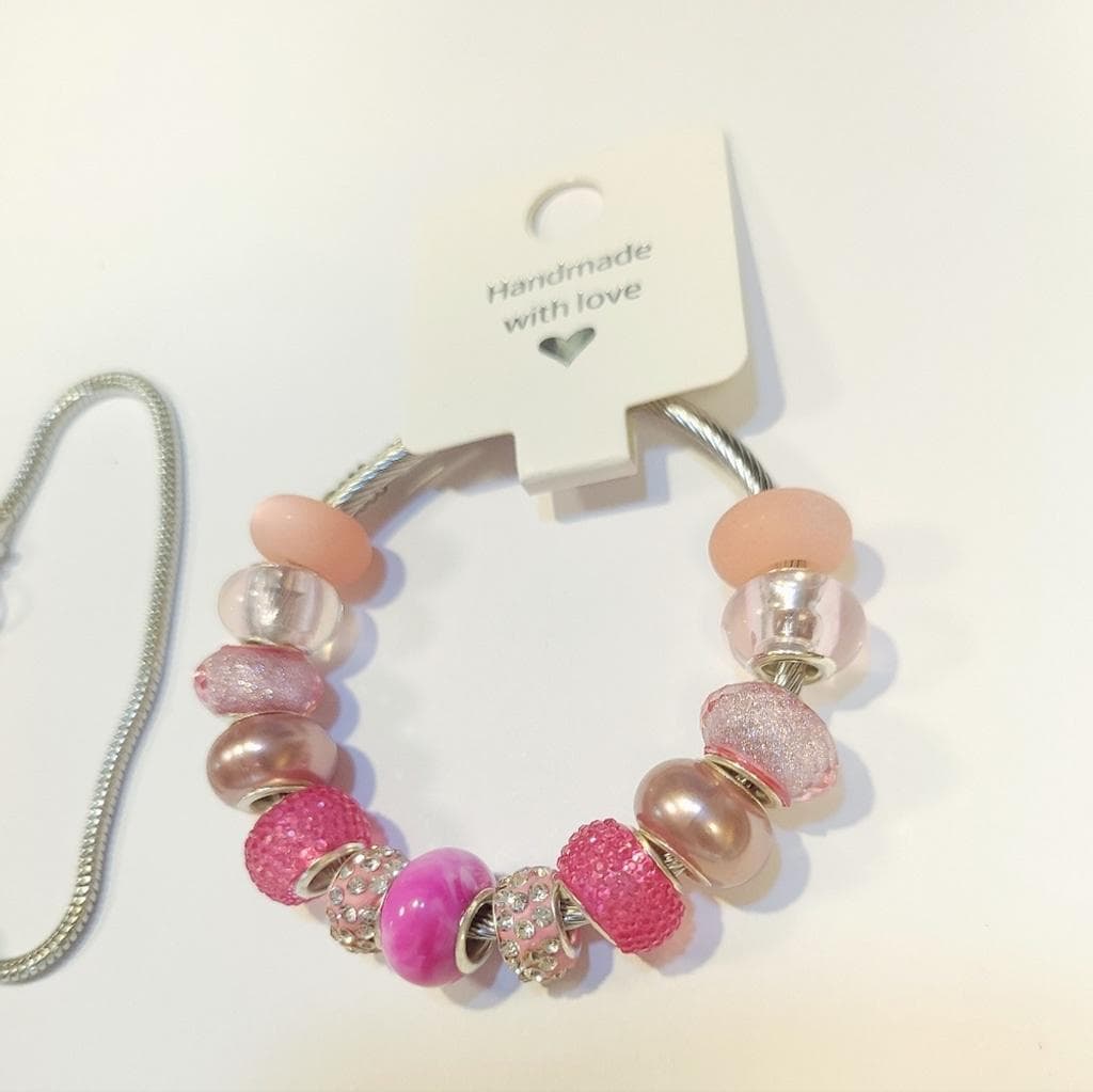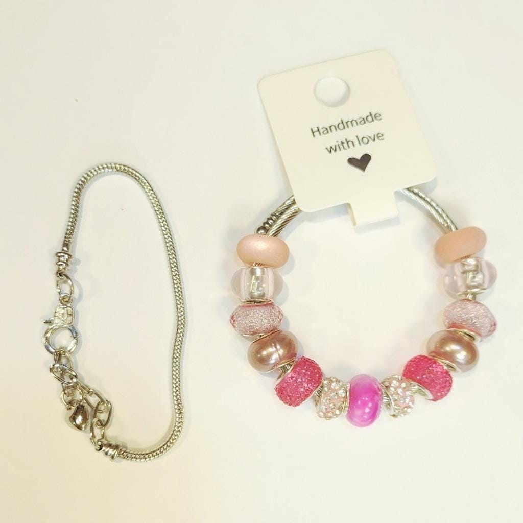 This elegant charm bracelet features a stunning combination of pink hues, perfect for adding a touch of sophistication to any outfit. The intricate design and vibrant colors make it a must-have accessory.