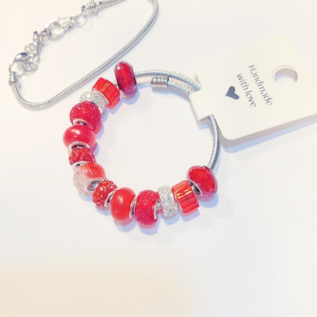 This elegant charm bracelet features a stunning combination of red hues, perfect for adding a touch of sophistication to any outfit. The intricate design and vibrant colors make it a must-have accessory.