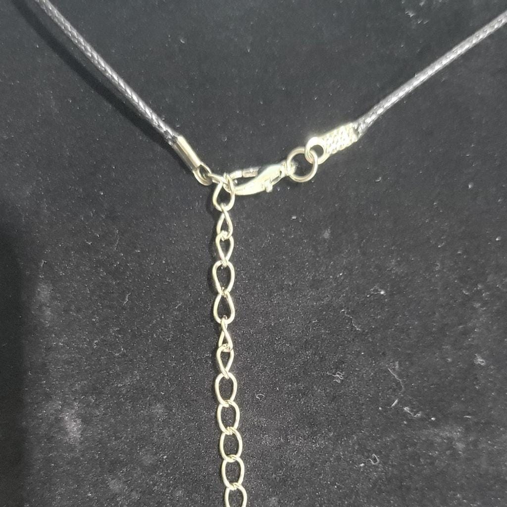 Handcrafted resin medallion with a Christmas theme, with snowflakes and candy embellishments, and glitter, hung on a corded, adjustable necklace, with a lobster clasp. Measurements are approximately .75" medallion on a 14" corded necklace, with a 2" extension.