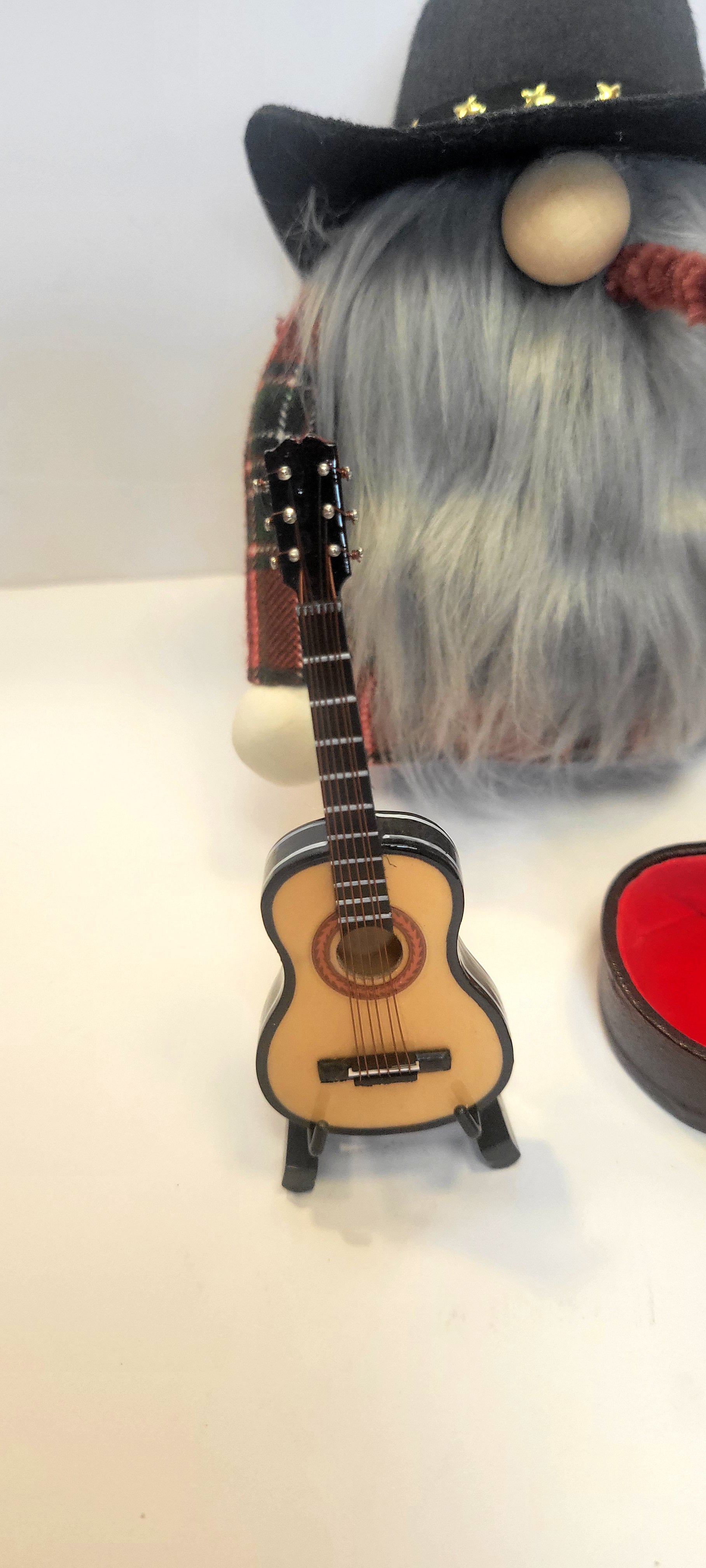 A one-of-a-kind, handcrafted gnome ready to serenade your mantelpiece or shelf with a little outlaw country charm. This handsome fella brings a touch of rustic, rockabilly style to any home, making him the perfect gift for musicians, Western fans, or anyone who appreciates a unique piece of folk art.