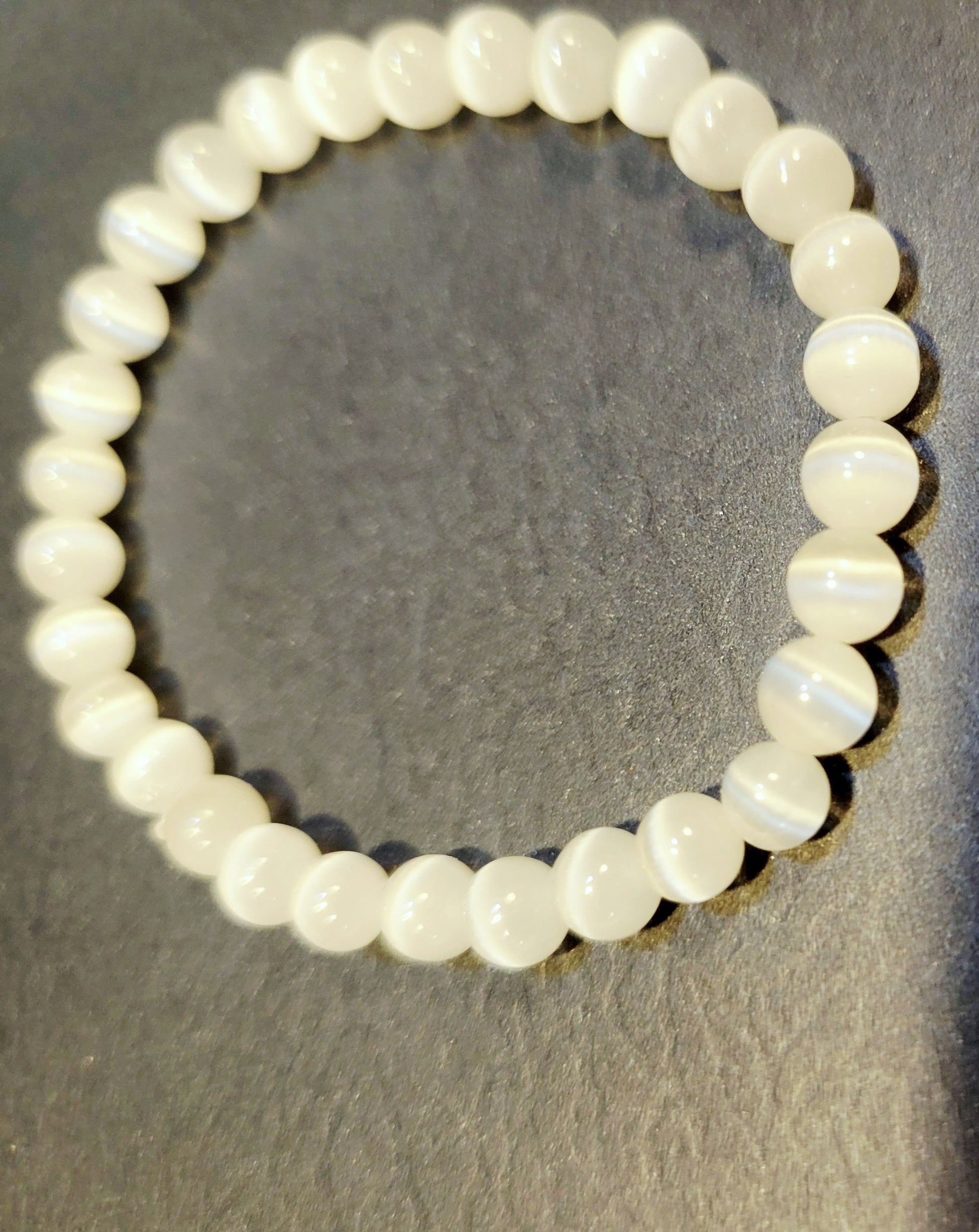 Elevate your style and energy with this 4mm Natural Crystal Selenite Dainty Beaded Bracelet on a stretchy cord, fitting a 6.75" wrist best.. This exquisite 4mm bracelet is not just a fashion accessory; it embodies tranquility and clarity, helping you feel centered throughout your day. Crafted from genuine selenite, this dainty piece promotes emotional healing and aids in meditation. Its lightweight design ensures comfort while making a statement, perfect for layering or wearing alone.