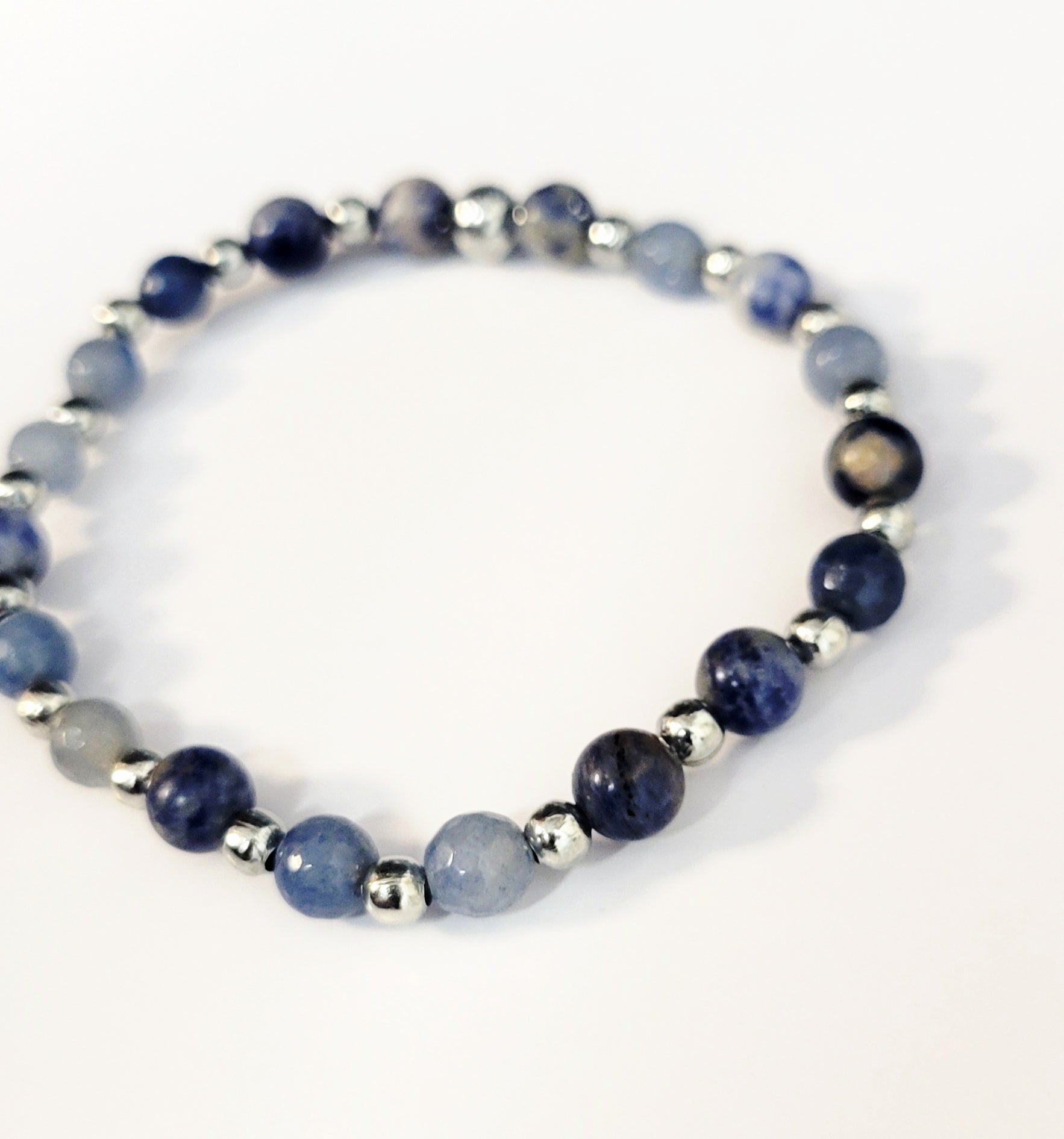 Handmade natural gemstone 6mm sodalite beads with stainless steel spacers. Fits 7" wrist best. Please remember to roll your bracelet over your hand to ensure longevity of the stretch cord.