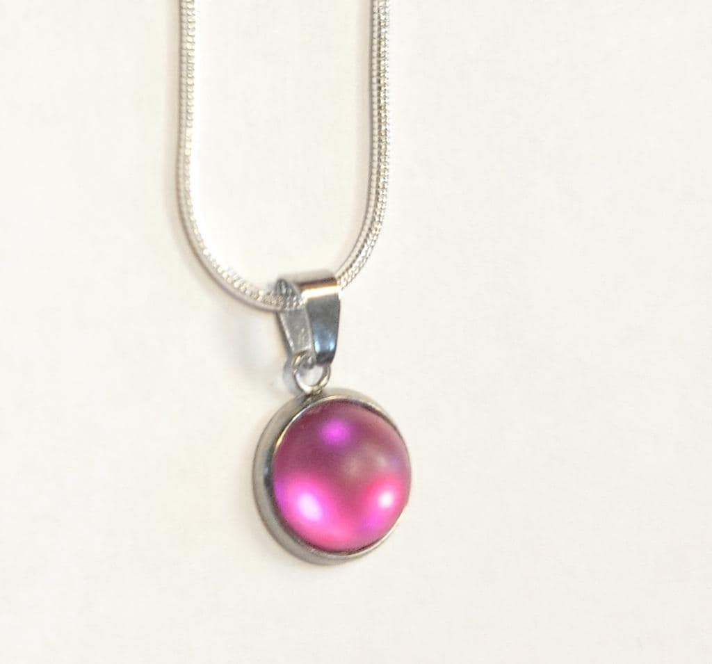 Hand crafted purple crystal sea glass rhinestone set on a 10 mm stainless steel bezel, strung on an 18" 925 stamped sterling silver chain.Discount for bundling both!