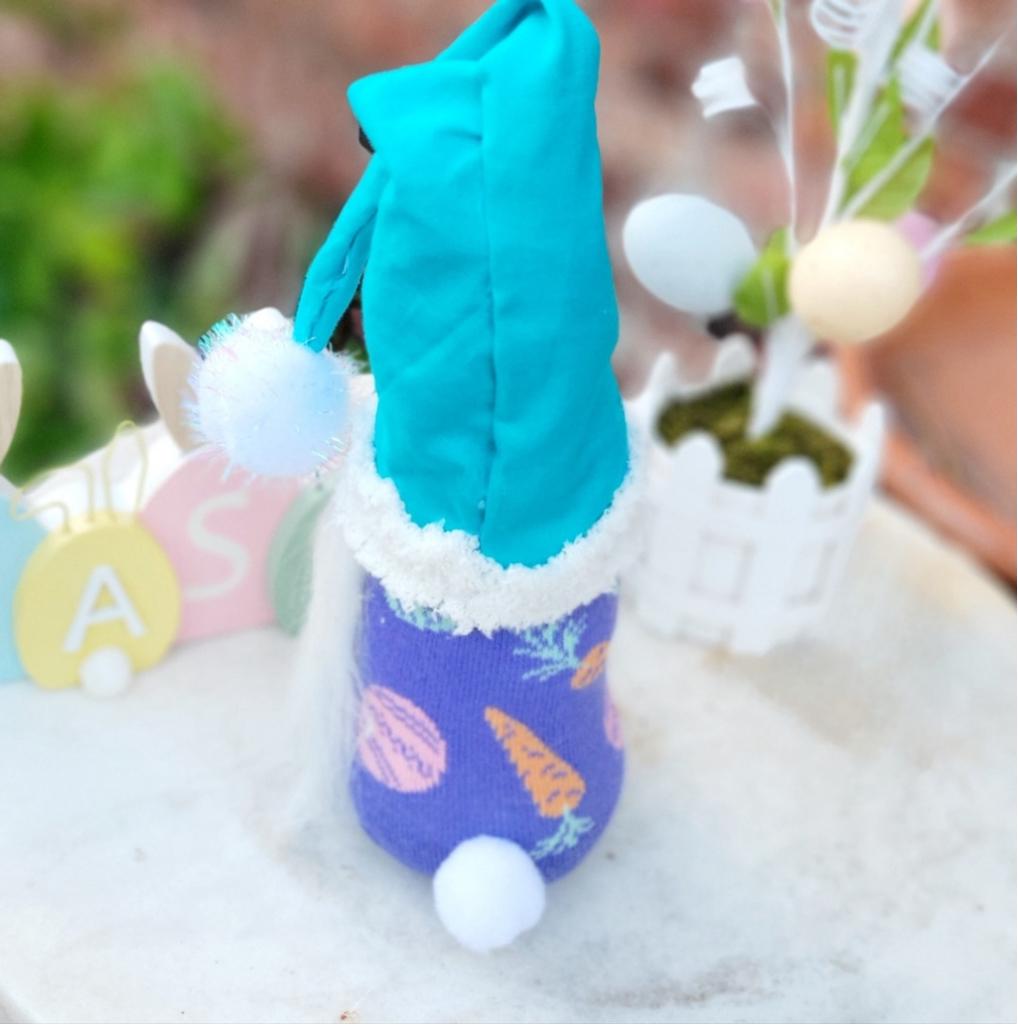 This charming Easter gnome with a bright blue hat and sparkly pom pom on the tip of his hat, wood nose, white beard, Easter egg outfit in multiple colors, and white pom pom bunny tail. Perfect for festive decoration, tier tray decor, or Rae Dunn Collection. This adorable gnome measures approximately 10" tall body and 17" tall to the tip of his hat.