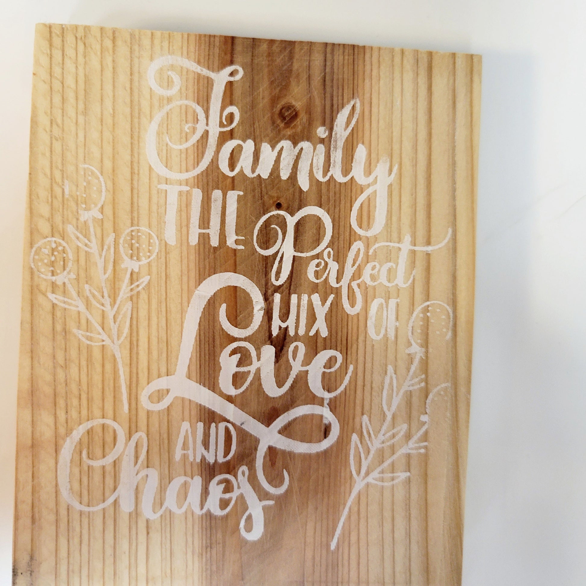 Handpainted on cedar, measuring approximitely 4x3", Family the perfect mix of love and chaos, table art, wall hanging, inspirational quote, rustic, farmhouse decor. A twine can be added prior to shipping to hang sign from, please just message me at time of purchase. All orders are wrapped with care and a handwritten thank you card included. Gift wrapping is available upon request