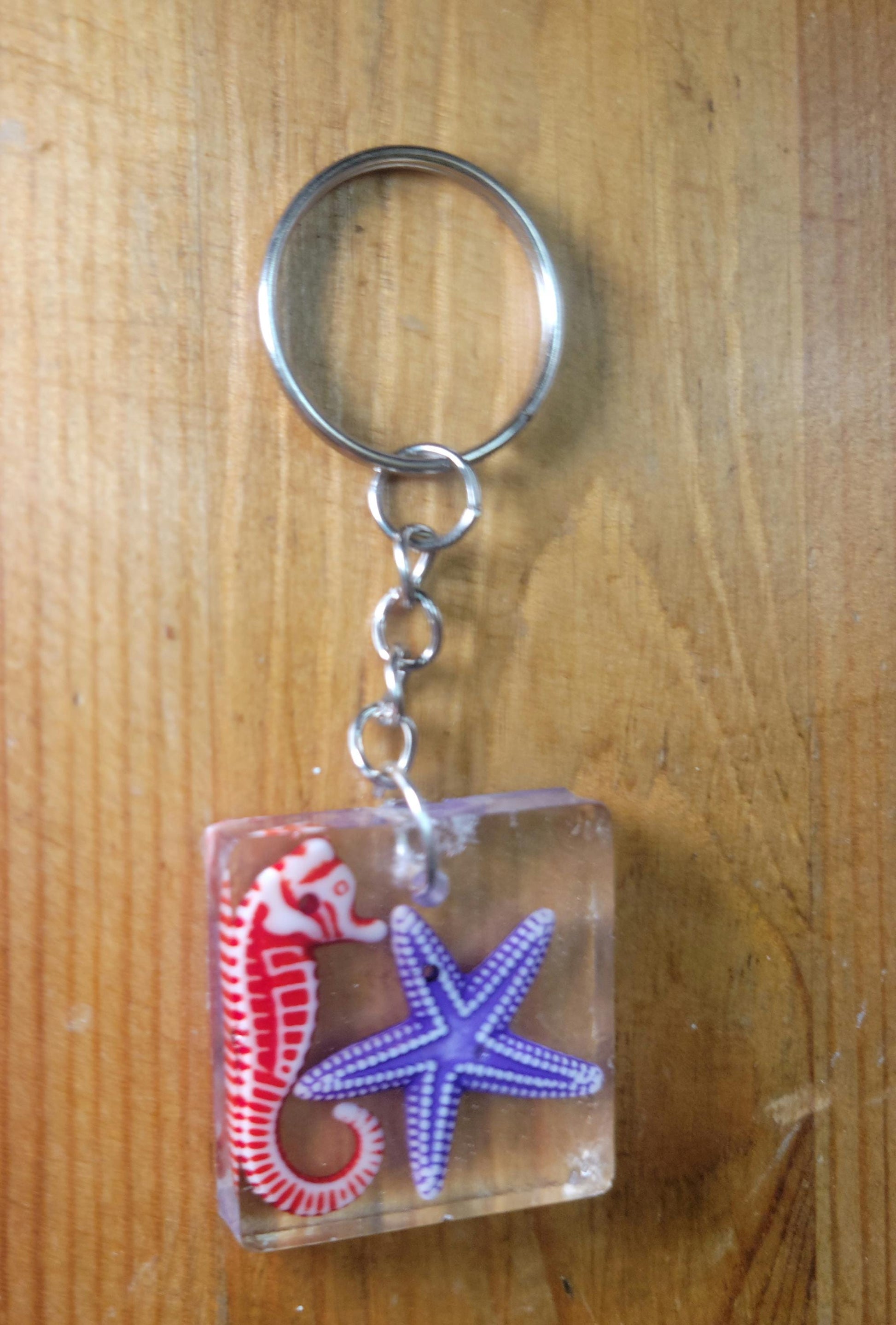 Seahorse and starfish resin keychain