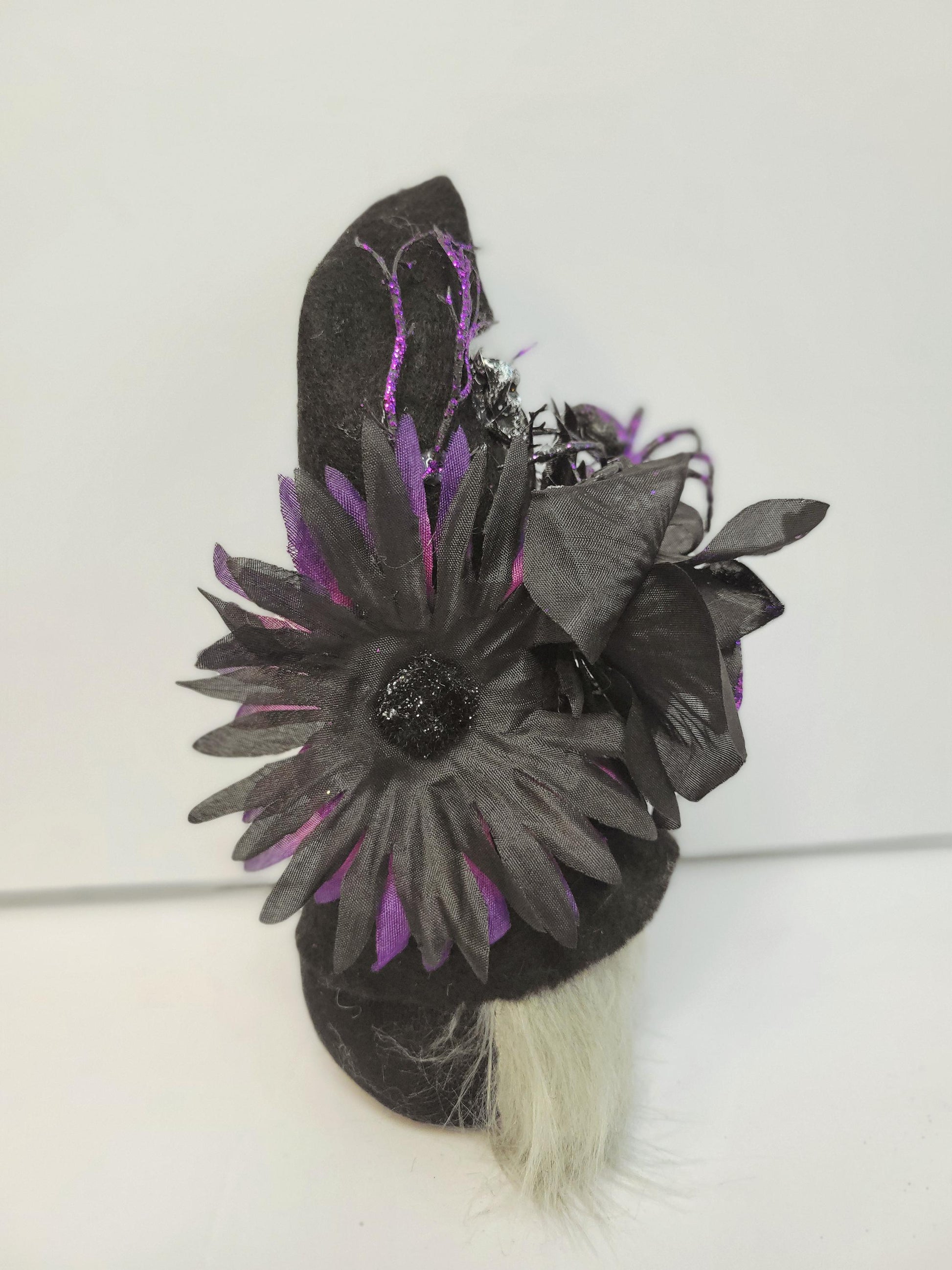 Meet Obsidian Nightshade, bold explorer shrouded in mystery and darkness. Obsidian is handmade with love, shrouded in a black sock, premium poly-fil and rice for stability, a black felt witch's hat, adorned with black and purple carnations, roses, foilage, spider, and silver skull. He will have a broom and cauldron. He measures approximately 8".