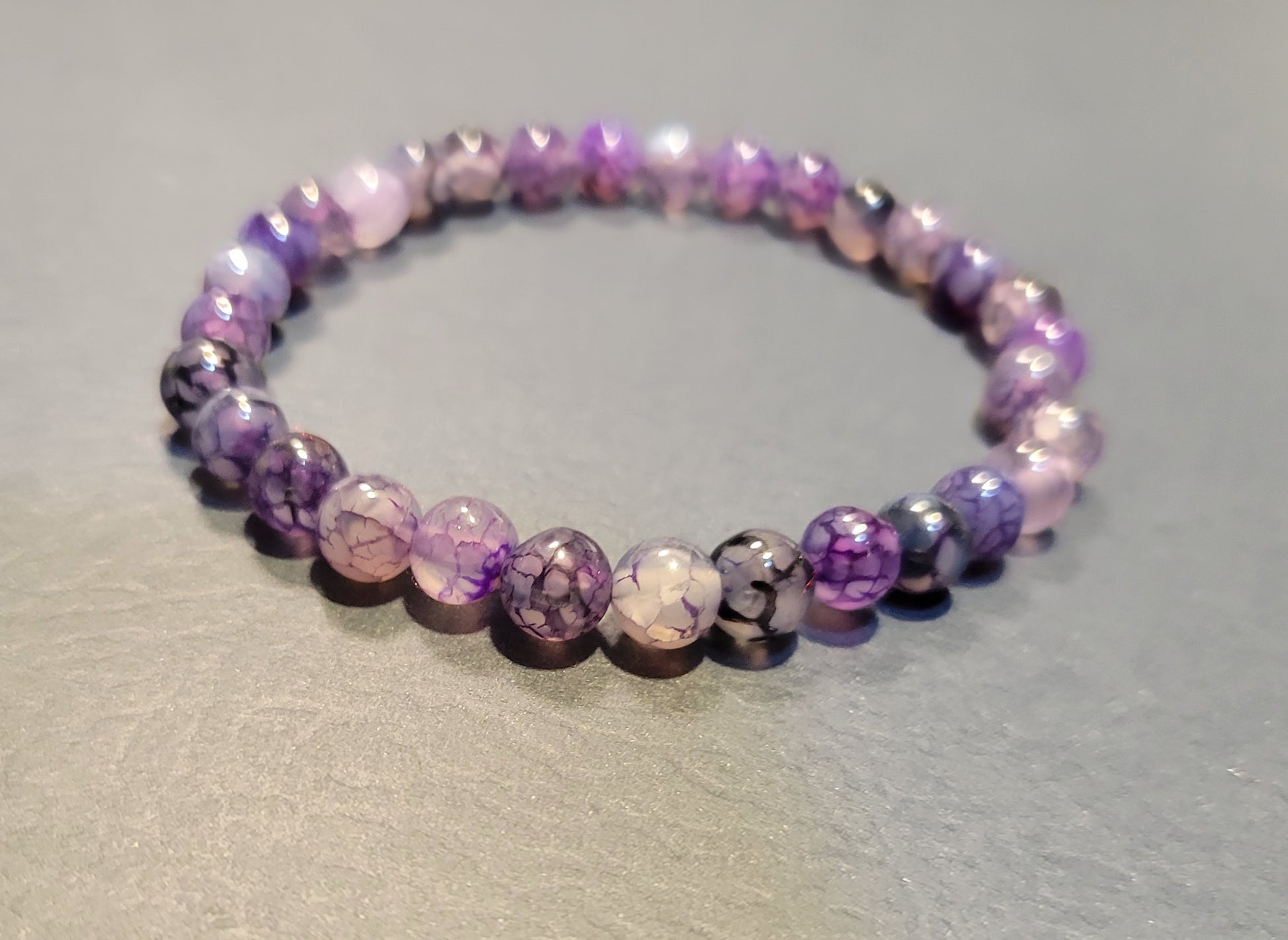 Handmade natural 4mm crystal purple dragon vein agate beaded bracelet of your choice on a stretchy cord. Fits 6-6.5" best.