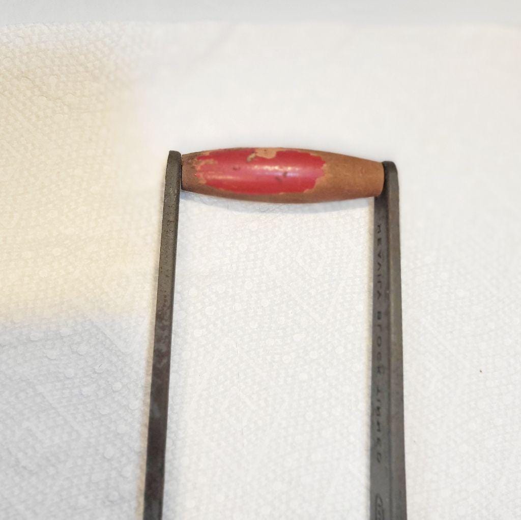 For all of you vintage farmhouse lovers, this is a very nice display piece. It is a vintage Ecko Comad Holland metal French fry cutter that is still sharp and still cuts. Being sold as is to retain its rustic look.