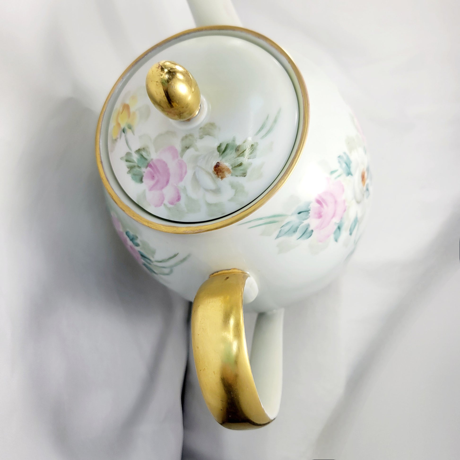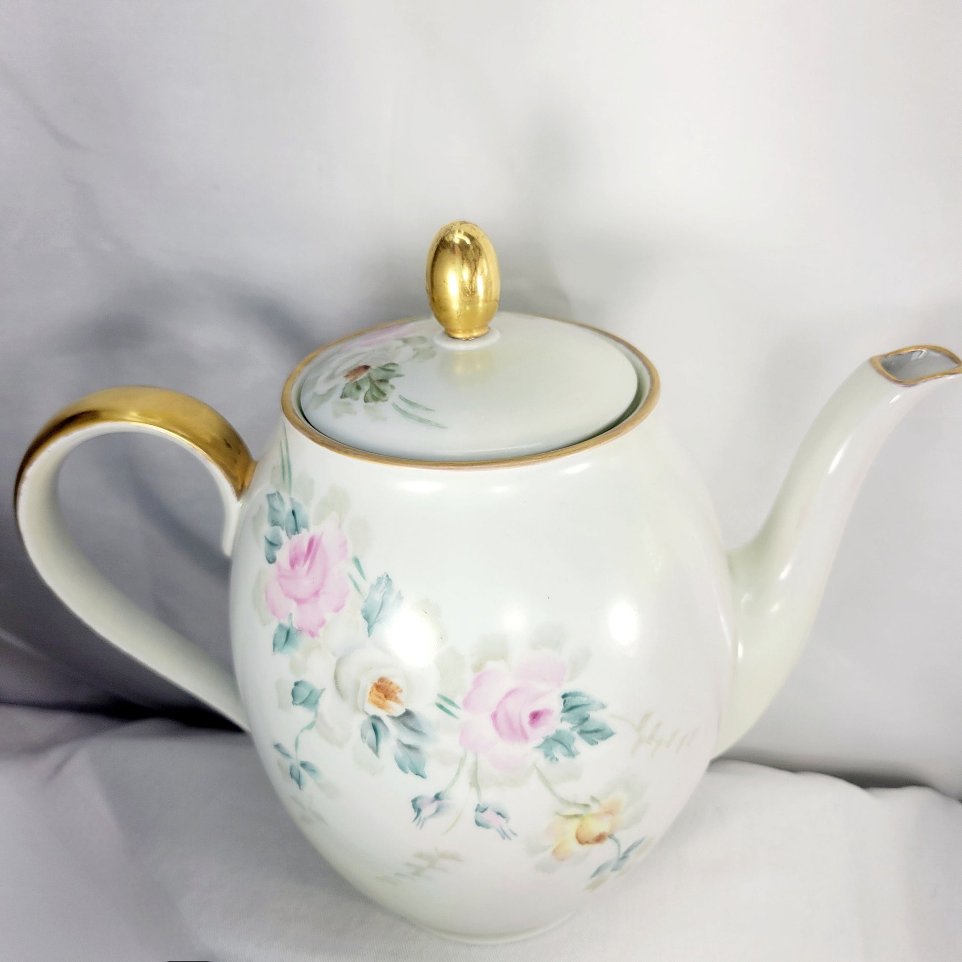 Vintage Hertel-Jacob Porzellen Bavaria Germany White Floral Teapot Gold Accents